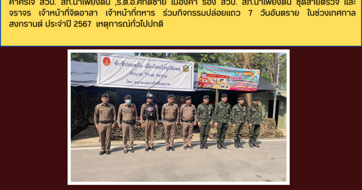 เดือนเมษายน 2567 (งานป้องกันปราบปราม)ร่วมกิจกรรมปล่อยแถว 7 วันอันตราย ในช่วงเทศกาลสงกรานต์ ประจำปี 2567